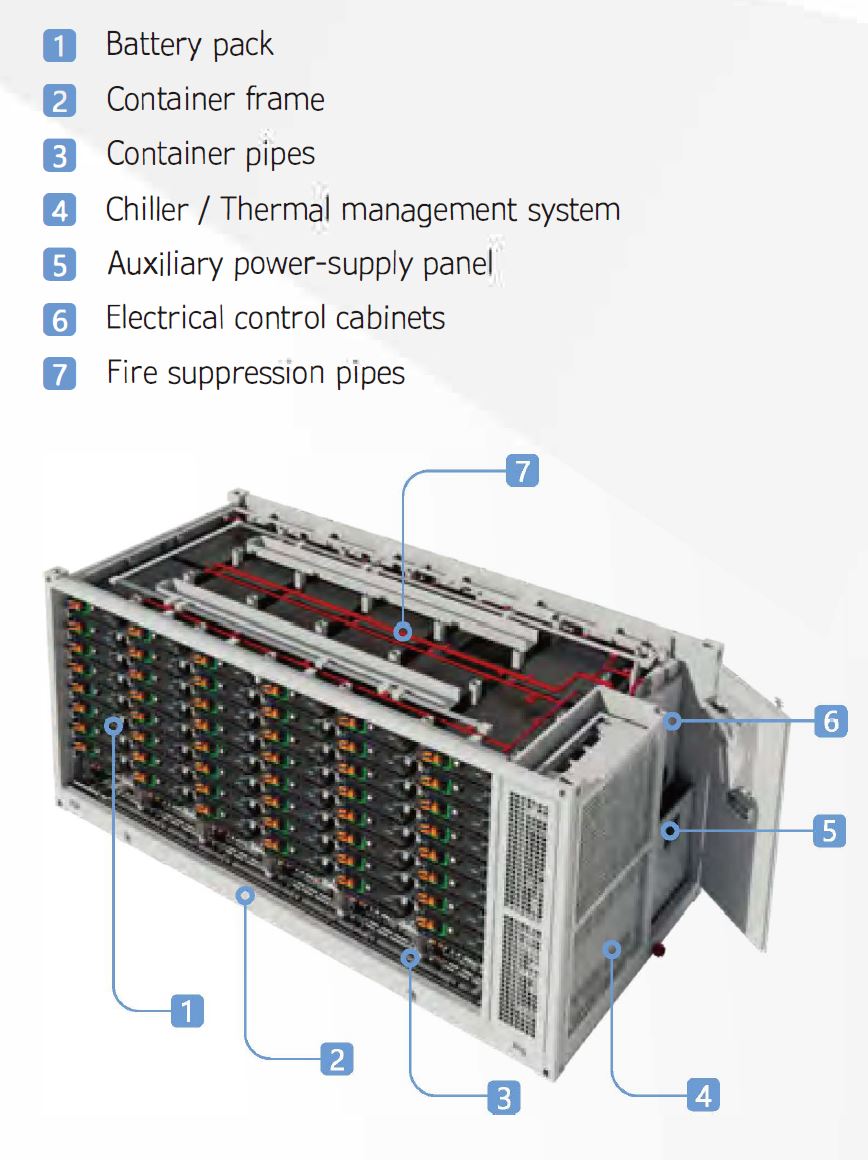 - Kapaciteta enega kontejnerja 3,42 MWh, 4,56 MWh, 5 MWh