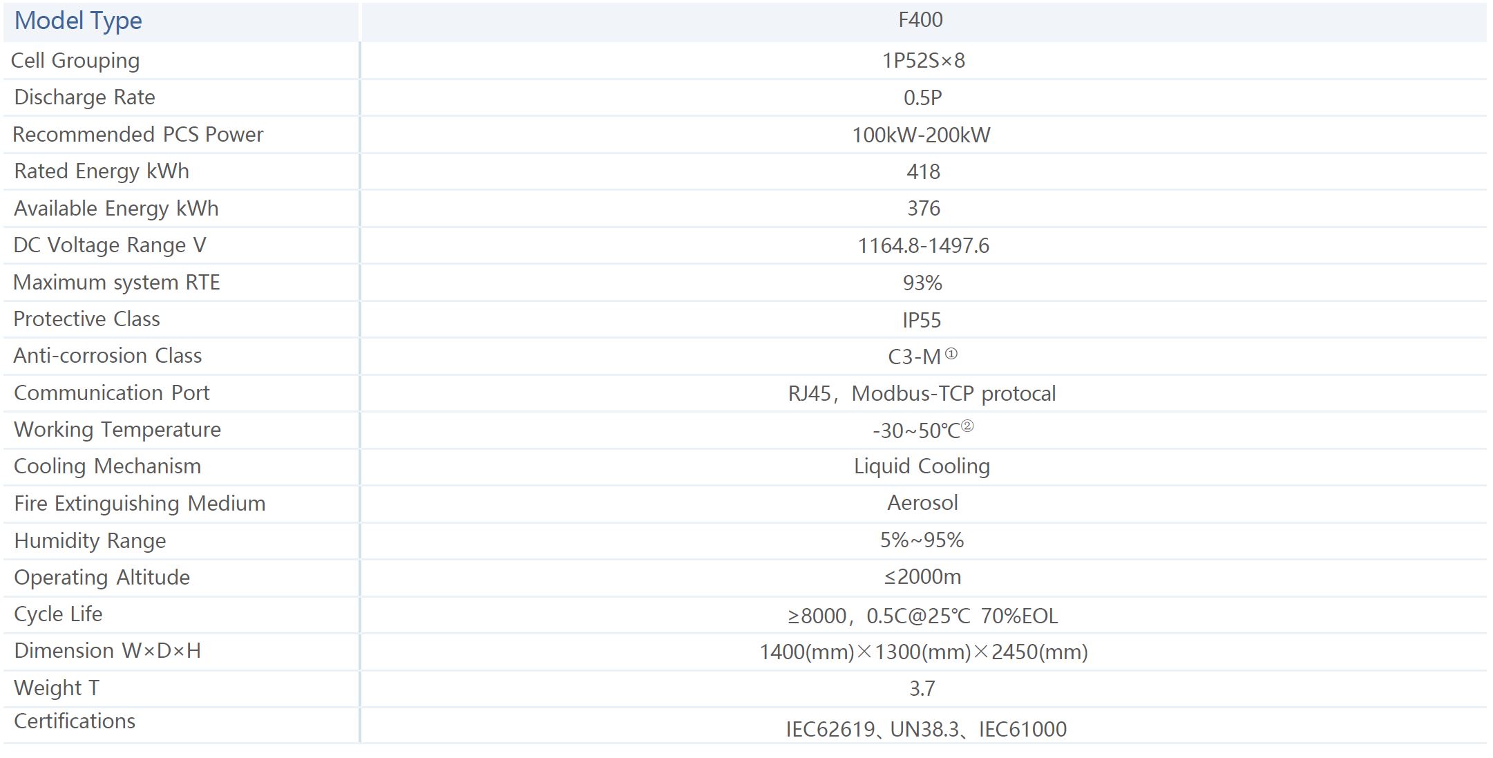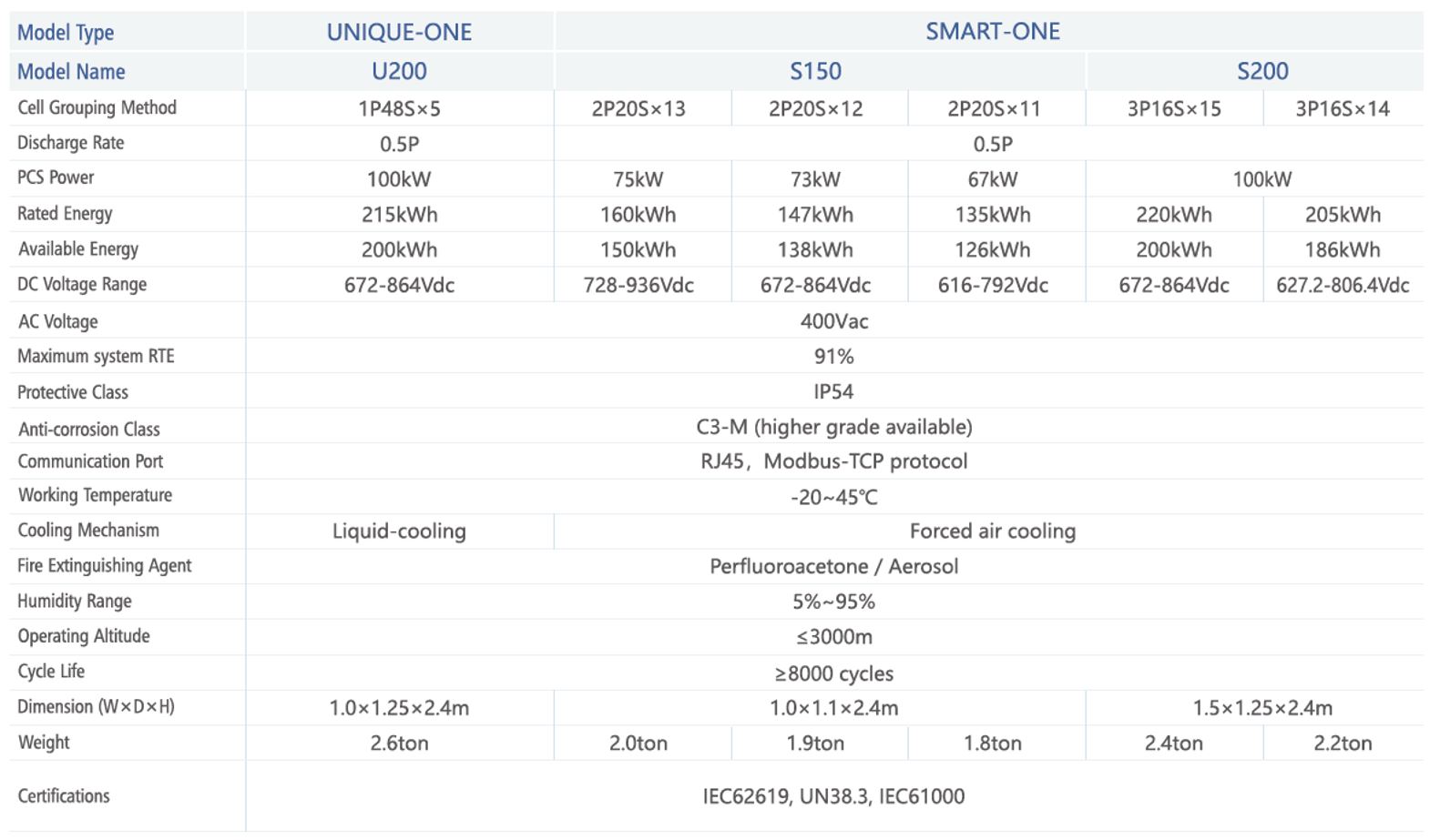 - Kapaciteta enega kontejnerja 3,42 MWh, 4,56 MWh, 5 MWh