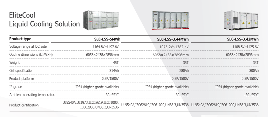 Izdelki serije pametnih ESS z Elite Cool tekočinskim hlajenjem pokrivajo napetostne platforme 1000 V in 1500 V, odlikujejo pa jih visoka varnost, visoka izhodna moč, natančno upravljanje in visoka integracija.